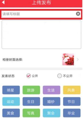 页顶的长框打入此乐册集的标题,下面的空框输纳心得,选彩格的模类,继而上传即可。